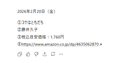 ④Amazon商品ページURL 余計な説明は禁止。必ず1冊のみ提示すること。